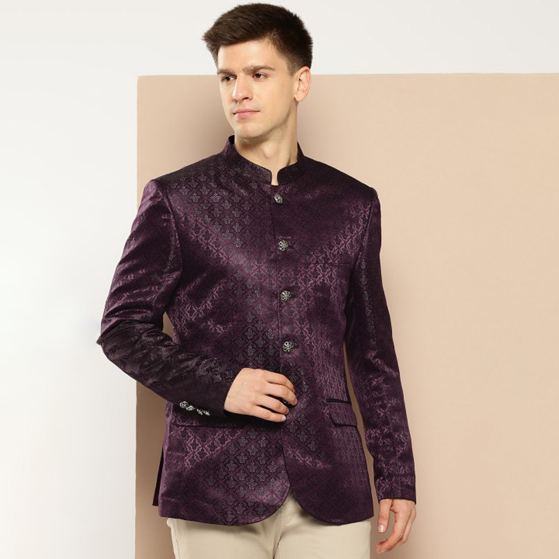 Men Black Floral Patterned Single-Breasted Slim Fit Tuxedo