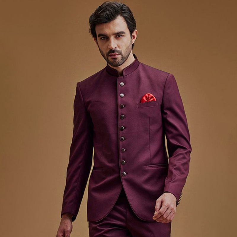 Men Solid Mandarin Collar Bandhgala Sherwani Set