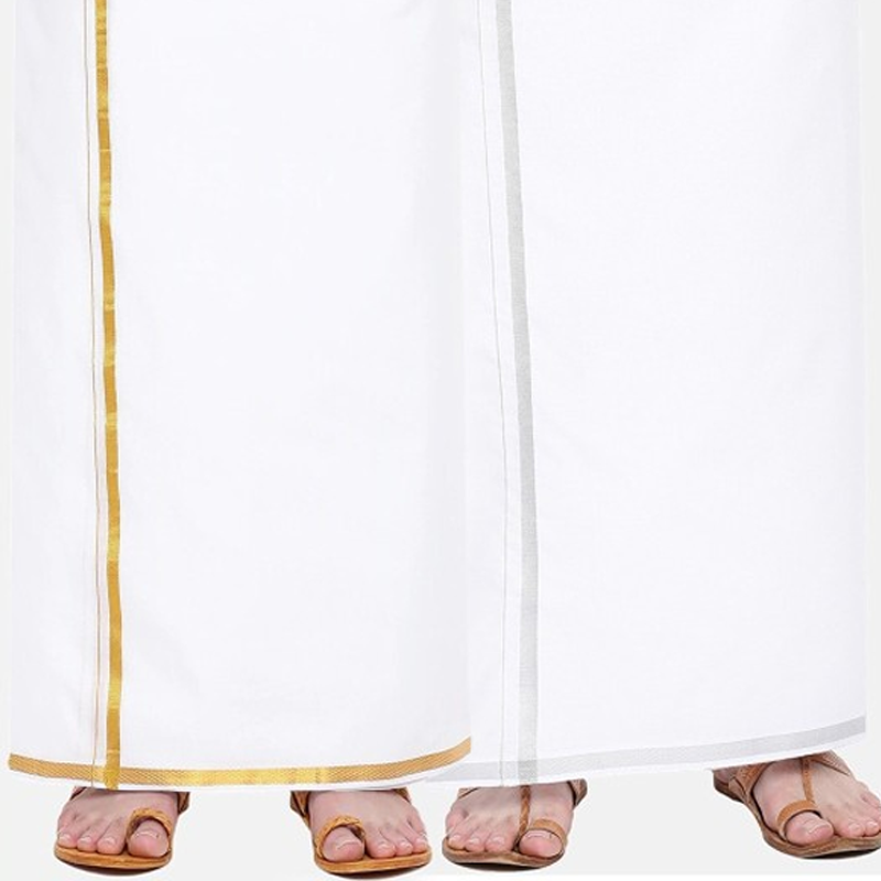 Men Pack of 2 Ethnic Dhotis Gold jari and Silver jari