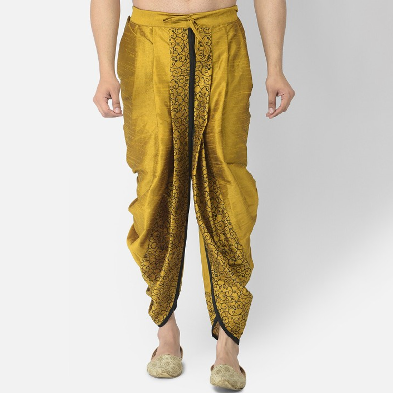 Men Yellow Printed Silk Dhoti