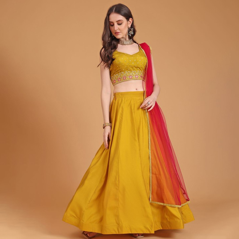 Embroidered Semi-Stitched Lehenga & Unstitched Blouse With Dupatta