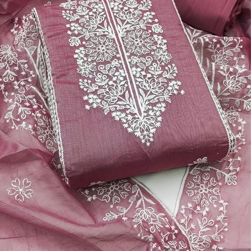 Embroidered Unstitched Kurta & Trouser With Dupatta Dress Material