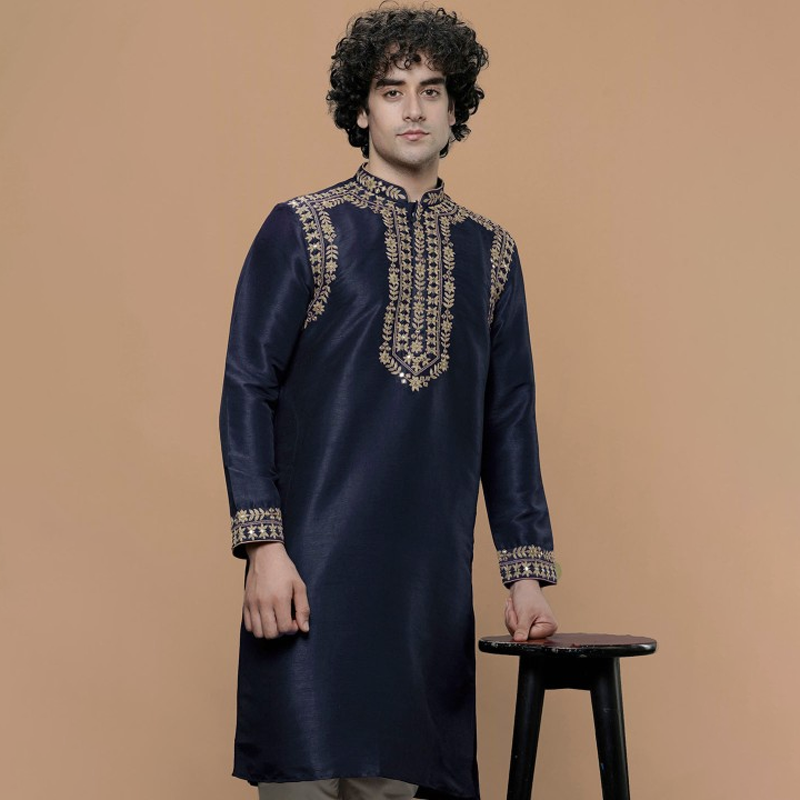 Men Yoke Design Flared Sleeves Thread Work Kurta